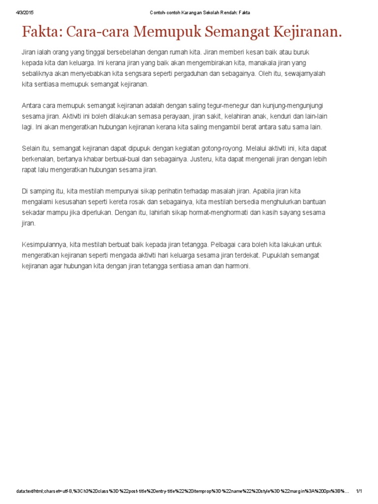 Contoh Contoh Karangan Sekolah Rendah Fakta Cara Memupuk Semangat Kejiranan Pdf